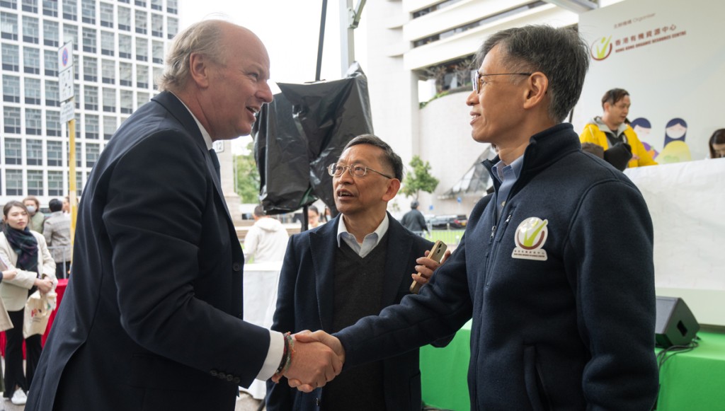 (From left) Mr Stefan Hipp, CEO of HiPP Group; Prof Jonathan Wong, Centre Director of the Hong Kong Organic Resource Centre (HKORC); and Mr Lai Kin-ming, Mickey, Director of Agriculture, Fisheries and Conservation.