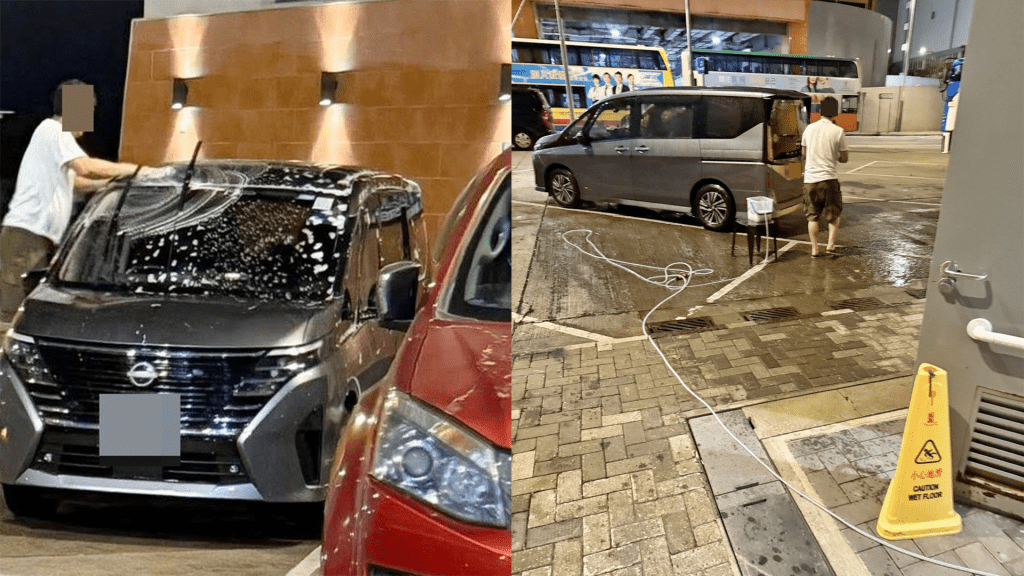 A man in Chai Wan has drawn online criticism after he was allegedly seen using water from a public toilet to wash his car, raising concerns over the misuse of public resources and hygiene.