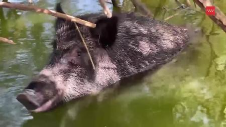 Wild boar rescued from pond in Spanish golf course amid heatwave