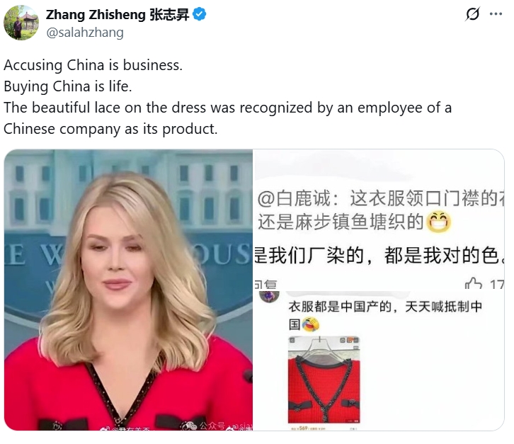 Tariff irony: US press secretary faces backlash for wearing reported 'Made in China' dress