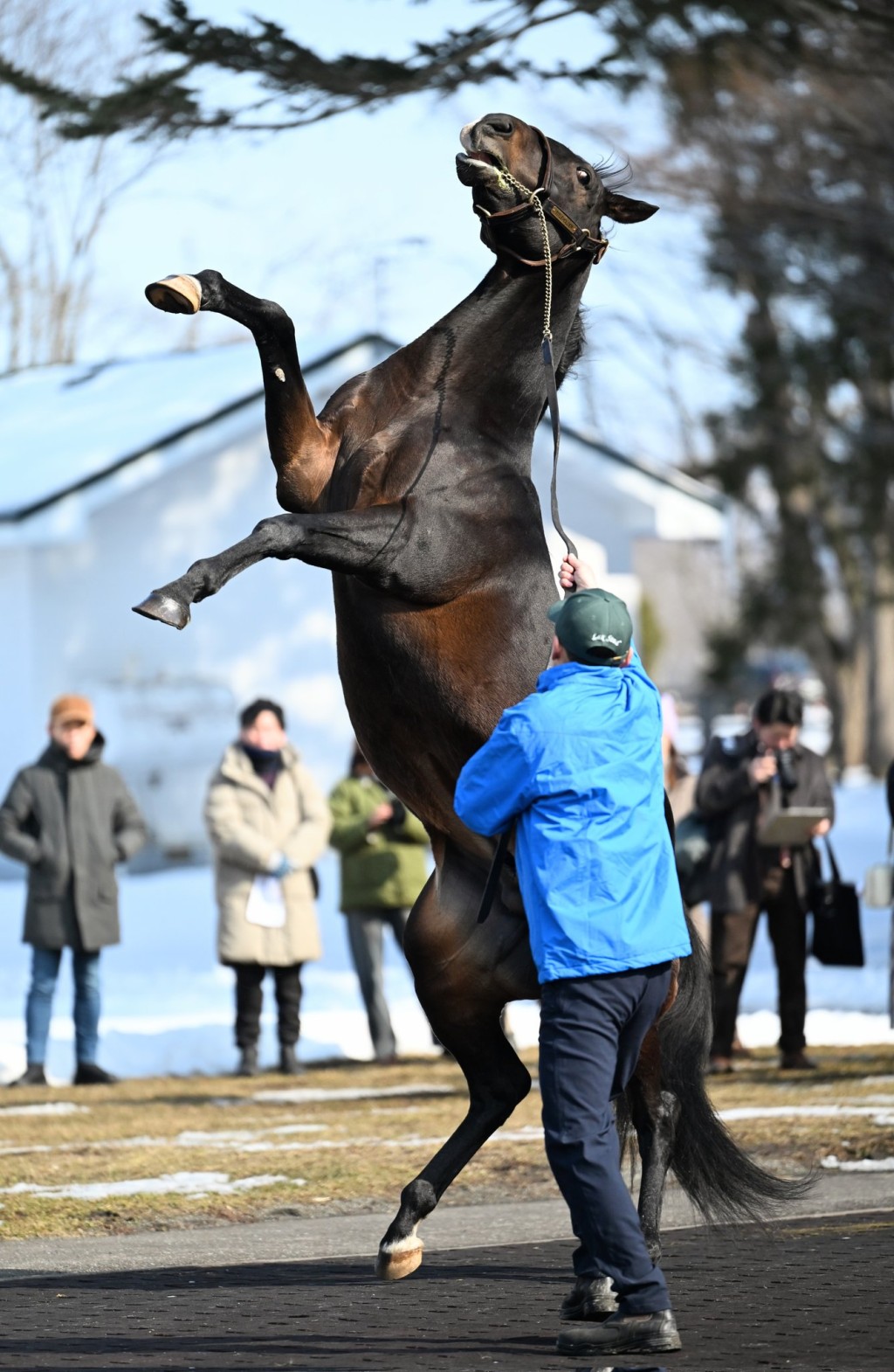 Titleholder was an enigmatic front-runner in his racing days, posting famous Group 1 victories in the Kikuka Sho, Takarazuka Kinen and Tenno Sho Spring. Nowadays the son of the late Duramente is a stallion at Rex Stud and during the recent stallion parade there, the old horse put on a display of his power and strength, showing everyone what they were missing since he retired from the track.