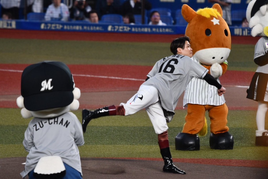 Win Carnellian carried the 16 saddle cloth when he gave Kosei Miura his biggest win in the G1 Sprinters Stakes last October, and the jockey was wearing the 16 jersey when he stepped up to the mound and threw the first pitch in the Chiba Lotte Marines versus Hokkaido Nippon-Ham Fighters baseball game at Marine stadium this week.