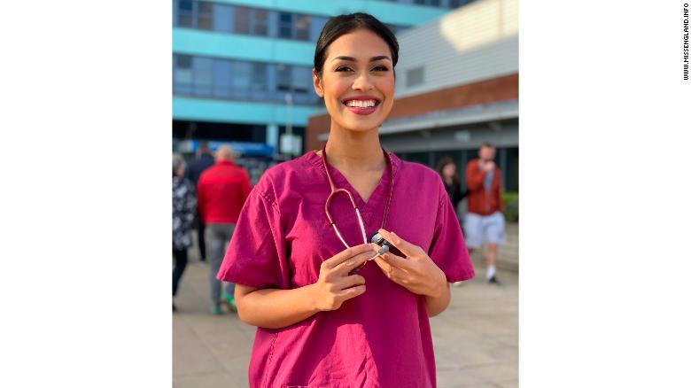 She told CNN that it felt wrong to be wearing her Miss England crown, even for humanitarian work, while people around the world were dying from coronavirus and her colleagues were working so hard.