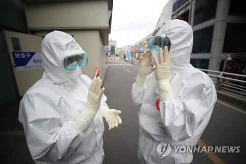 Medical workers at Keimyung University Dongsan Medical Center in Daegu, 300 kilometers southeast of the South Korean capital Seoul, on Monday.