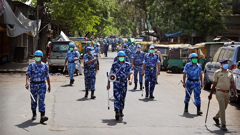 India's Rapid Action Force patrols a street during the lockdown to control the spread of the new coronavirus in Ahmedabad.