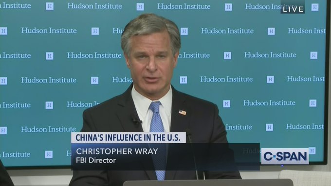 FBI Director, Christopher Wray says of the nearly 5,000 active counterintelligence cases currently under way across the country, almost half are related to China.