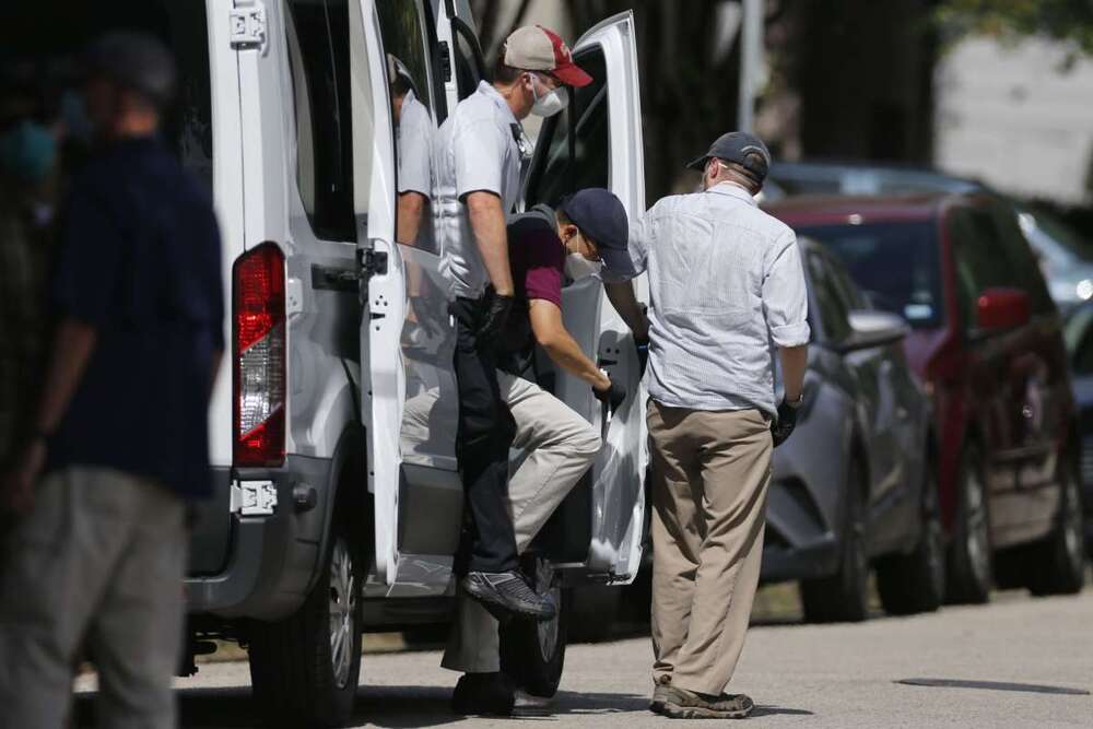 Federal officials arrive to make entry into the vacated Consulate General of China building Friday, July 24, in Houston in Texas.