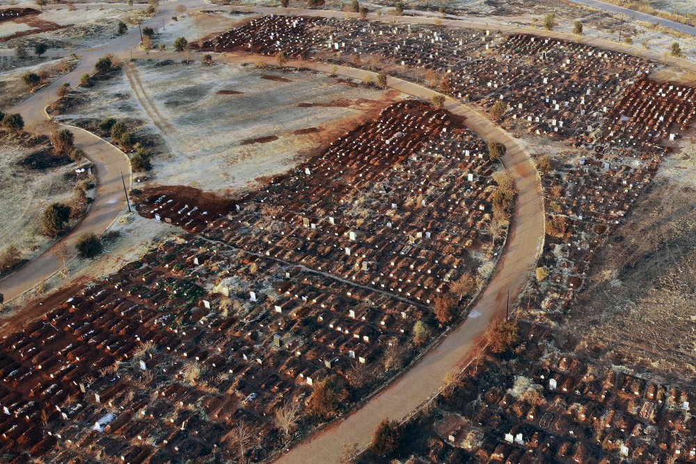 Recently filled graves are seen in the Olifantsveil Cemetery outside Johannesburg, South Africa, Wednesday August 5.