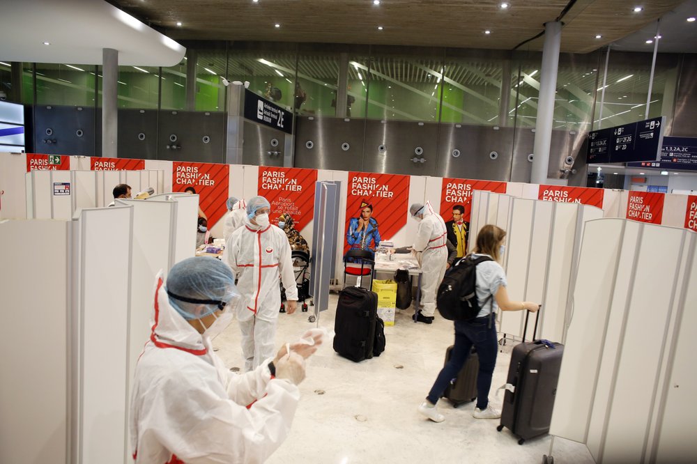 A passenger leaves after being tested for the new coronavirus at the Roissy Charles de Gaulle airport, outside Paris, Saturday, August 1.