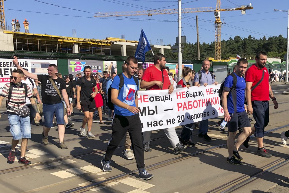 “Lukashenko is a former president. He needs to go,” said Sergei Dylevsky, the leader of the protest at the Minsk Tractor Plant, adding that Tsikhanouskaya is “our president, legitimate and elected by the people.”