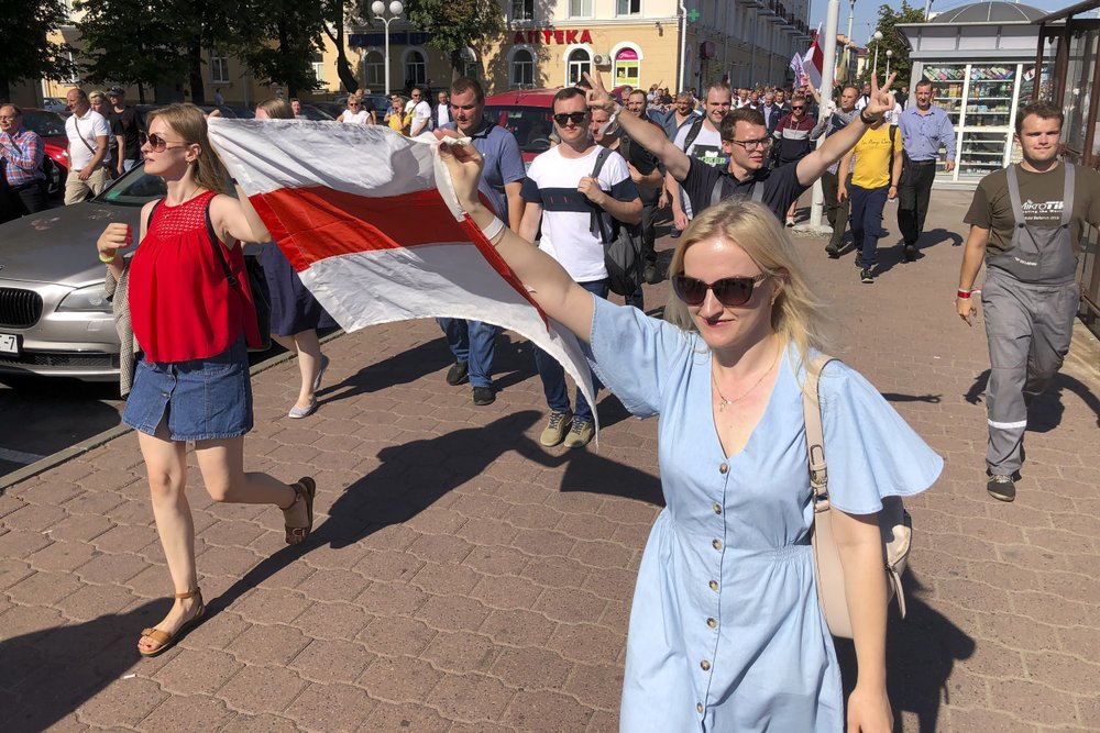 As he spoke, over 5,000 striking workers from the Minsk Tractor Plant marched down the streets of the city, demanding that Lukashenko cede his post to Sviatlana Tsikhanouskaya, the leading opposition candidate.