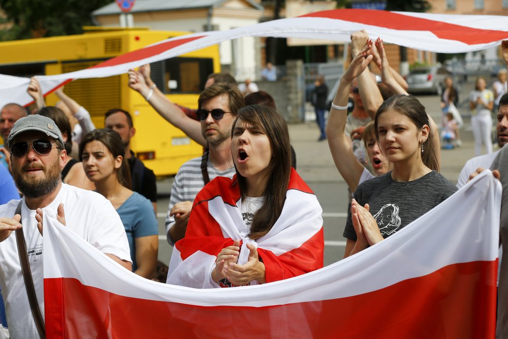 Kolesnikova argued that the embattled president “should hear his society, hear the people — the majority calls him a former (president).”