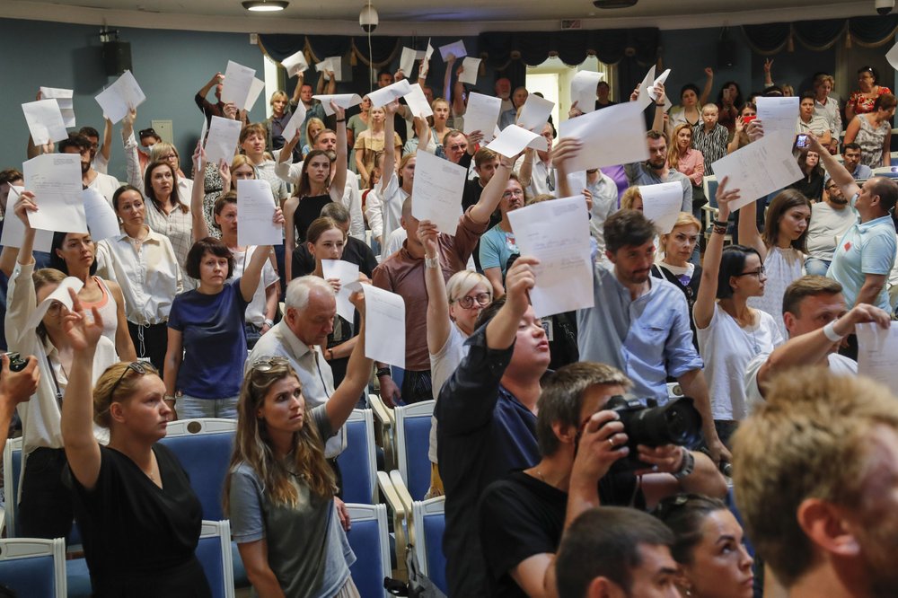 “It’s important to speak out, important not to stay silent,” prominent actor Kristina Drobysh told supporters outside the theater. “We’ve overcome our fear, our society has overcome its fear. Belarusians have changed — which means Belarus will change, too.”