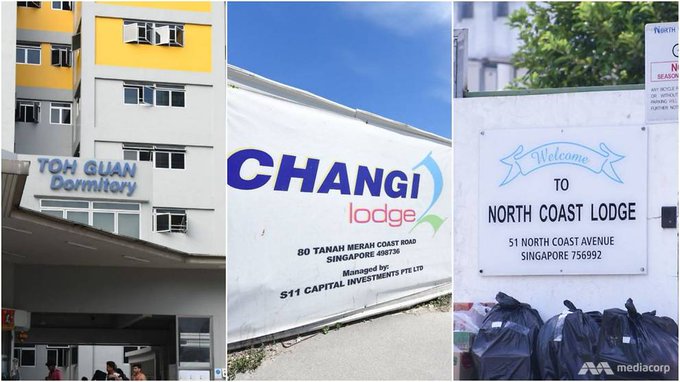 The Ministry of Health has identified new cases at Toh Guan Dormitory, Changi Lodge II and North Coast Lodge, Channel News Asia reports.