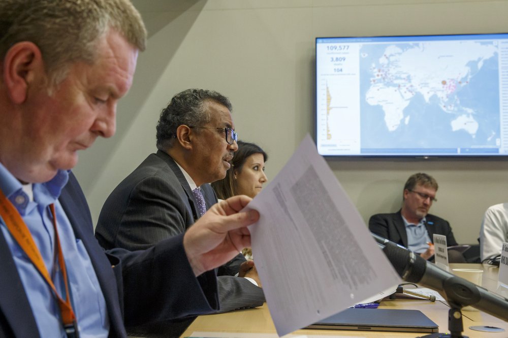 WHO director-general Tedros Ghebreyesus speaks during a news conference in Geneva in March. He has been roundly condemned by the United States for his handling of the coronavirus response from December last year whet it emerged in Wuhan in Hubei.