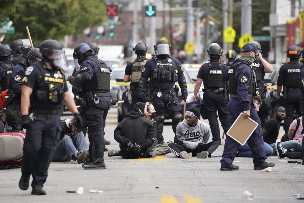 The protesters had gathered in the Kentucky city to protest a grand jury’s decision to not indict police officers on criminal charges directly related to Taylor’s death earlier this year in a drug raid gone wrong.-AP
