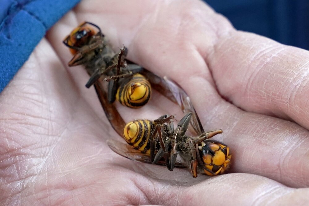 The invasive species insects, known as "murder hornets", have a powerful sting and can spit venom.