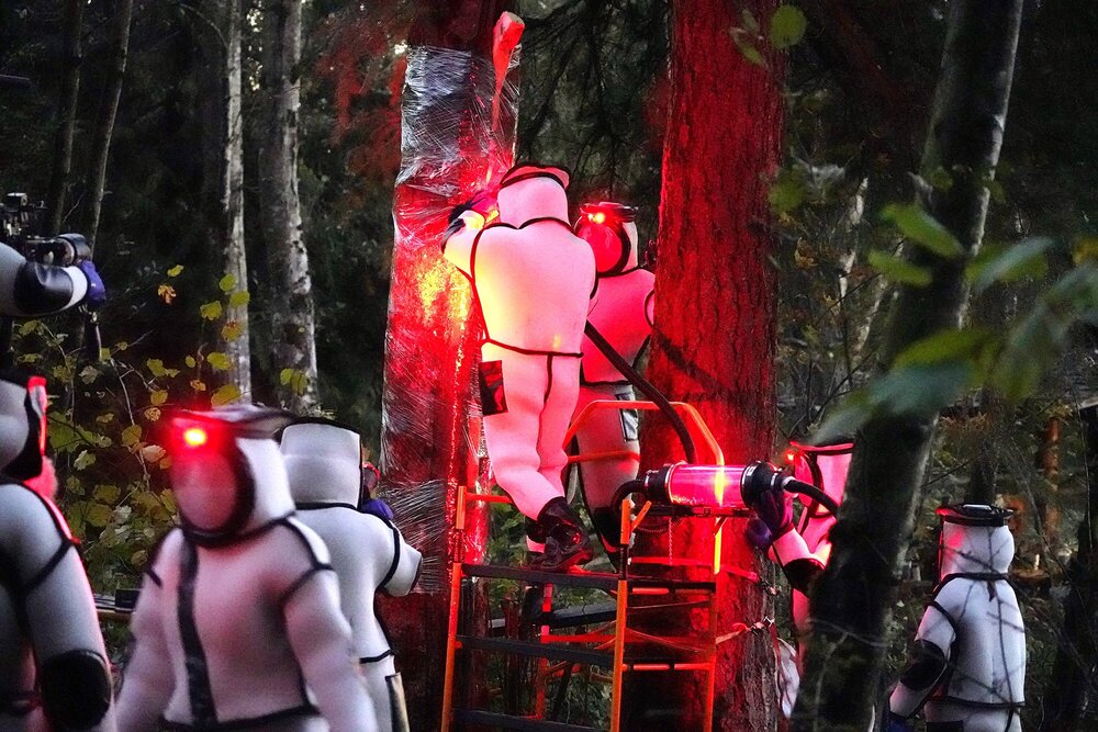 On Saturday, a crew of scientists wearing protective suits vacuumed the insects from the tree, which will now be cut down to remove any further nests.
