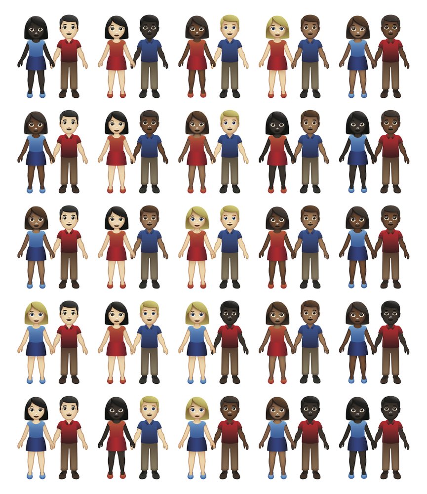 As a third-party developer, Parrott was the first to put out multiracial emoji through her own app, iDiversicons, five years ago. She advocated as a non-voting member of Unicode for the consortium to do the same for a wide array of devices. A campaign leading to the inclusion of interracial couples, later spearheaded by the dating app Tinder and others, received a Webby Award last year. Parrott was not involved in development of the couples emoji but noted the significance in promoting greater diversity.