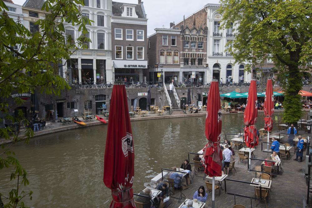 Dutch customers eager for their first drink of coffee or something stronger at a cafe terrace have flocked to outdoor seating as the Netherlands' lockdown eased in Utrecht, Wednesday, April 28, 2021.