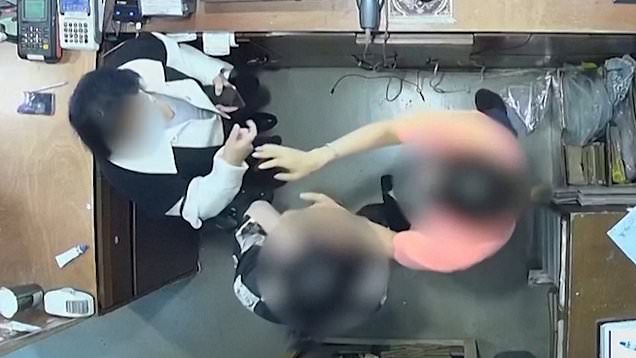 Xiang Xueqiu, wife of Belgium's ambassador to South Korea confronts shop workers in Seoul on April 9, 2021.