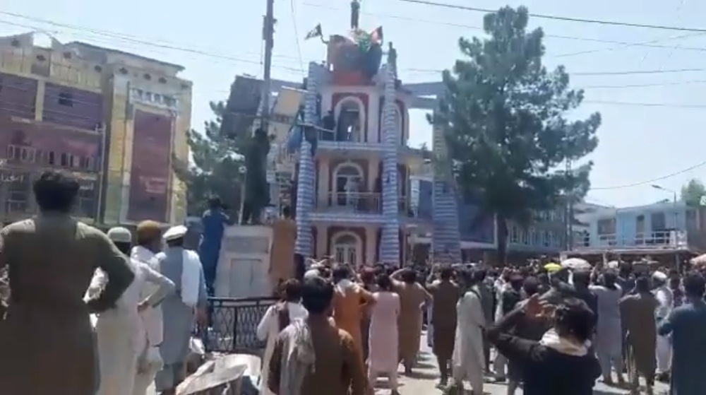 Dozens of people gathered in the eastern city of Jalalabad to raise the national flag a day before Afghanistan's Independence Day, which commemorates the end of British rule in 1919. They lowered the Taliban flag -- a white banner with an Islamic inscription -- that the militants have raised in the areas they captured.