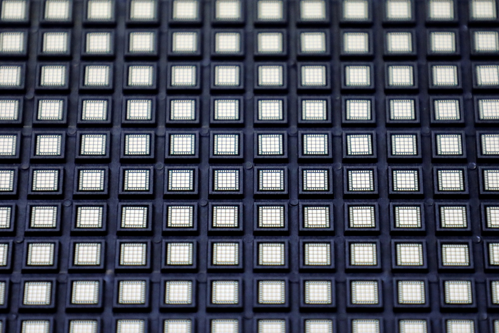 Semiconductor chips are pictured at chip packaging firm Unisem (M) Berhad plant in Ipoh, Malaysia October 15, 2021. (Reuters)