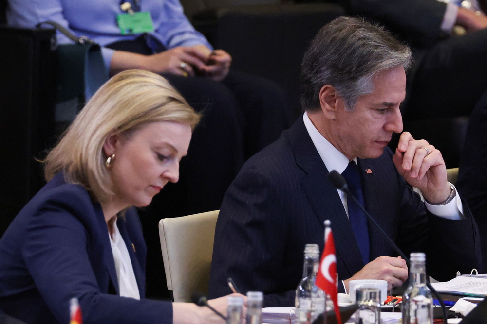 "We've been very coordinated on sanctions, we've shown huge unity. It's having a big effect in Russia, but we now need to do more," Liz Truss, Britain's foreign minister, said during a visit to Brussels for a meeting of NATO members.