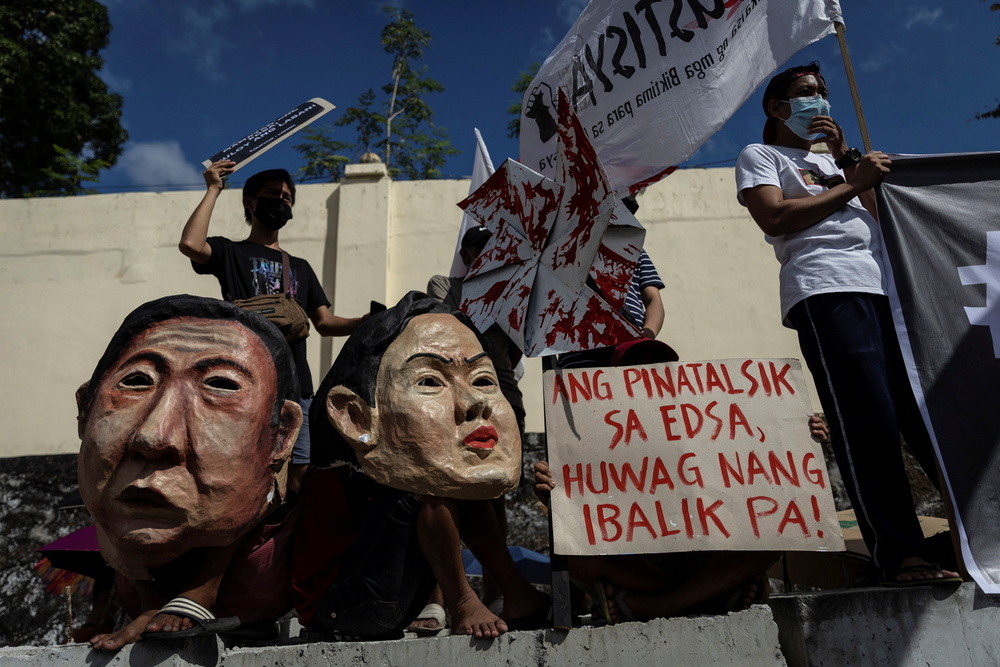 Filipinos participate in a rally marking the anniversary of the 1986's People Power Revolution that overthrew the late dictator Ferdinand Marcos, near the EDSA People Power monument in Quezon City, Metro Manila, Philippines. (Reuters)