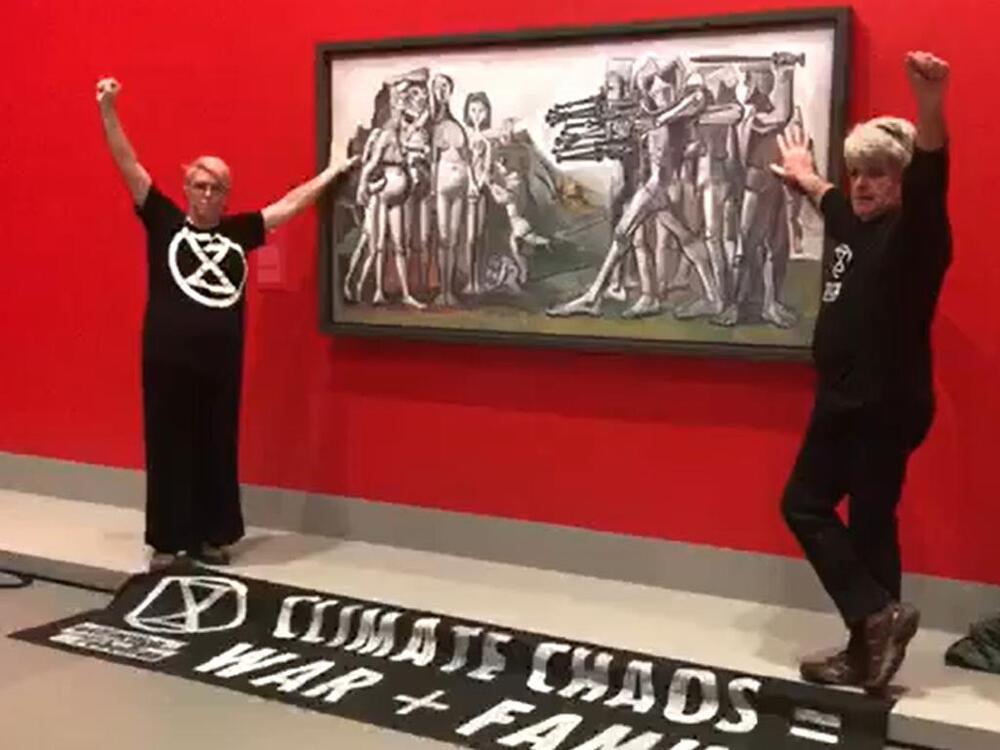 The 1951 Picasso work "shows the horrors of war", Extinction Rebellion Victoria said on its Facebook page.