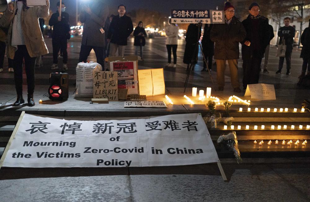 About 200 protesters lit candles and shouted “Free China!” two blocks from the White House on Sunday in a show of support for demonstrations in China calling for an end to severe anti-virus controls and for political change.