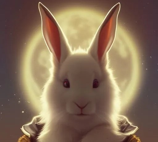 A white rabbit on a full moon. (AI Creation by @CallanDW)