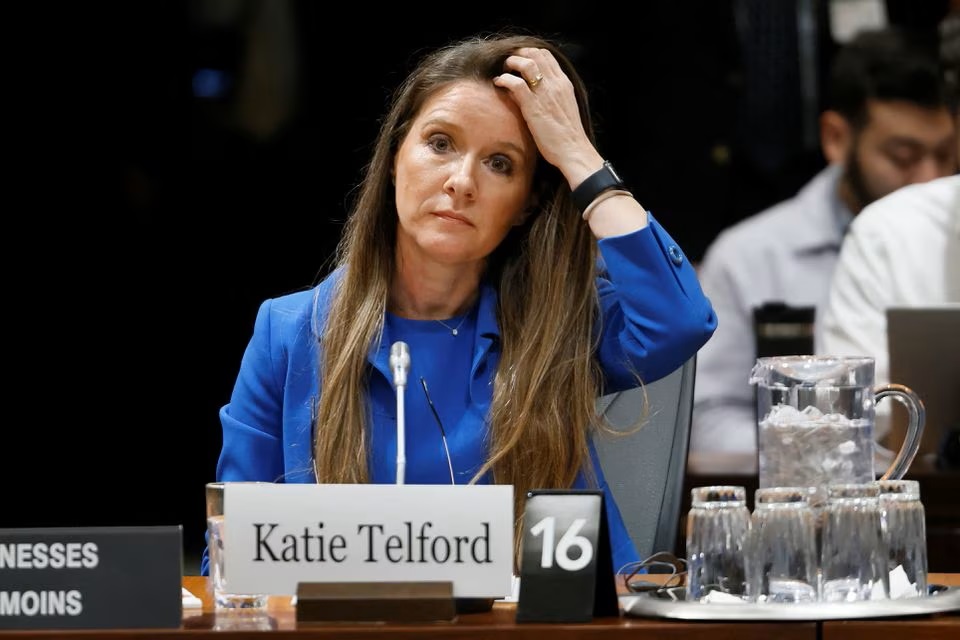Katie Telford, top aide to Canada’s Prime Minister Justin Trudeau, prepares to testify before a parliamentary committee probing alleged election interference from China on Parliament Hill in Ottawa. (Reuters)