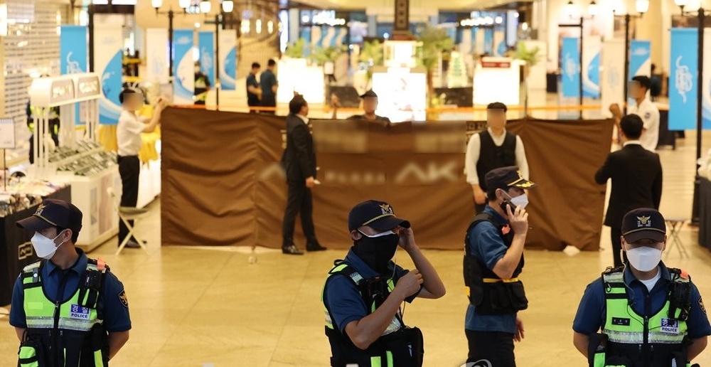 The police apprehended the suspect, in his 20s, just 10 minutes after receiving reports at around 5.55 pm that a man was stabbing people at the department store adjacent to the Seohyeon subway station.