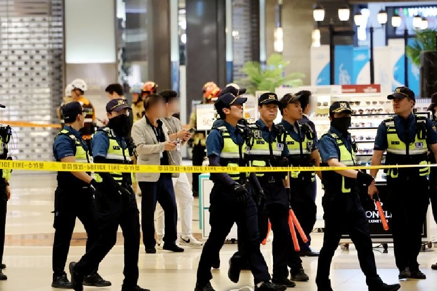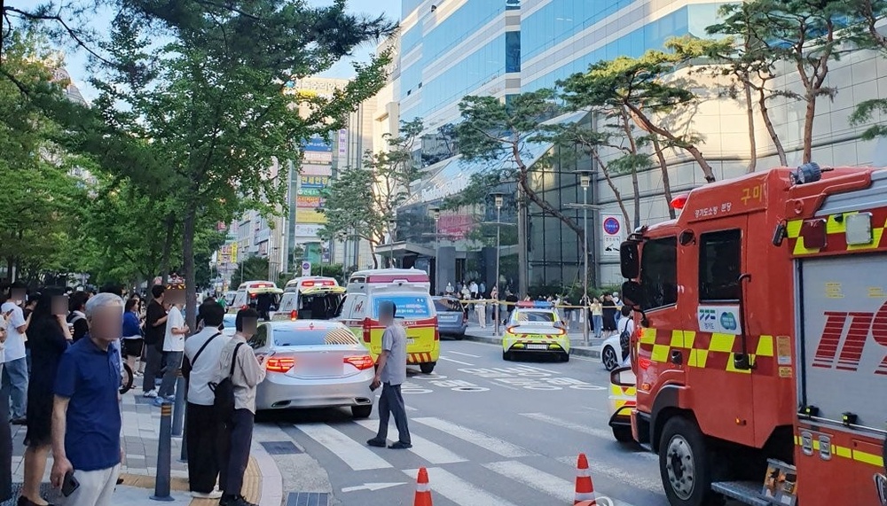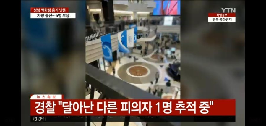Photos from the scene showed forensic units examining the halls of the AK Plaza, where the stabbings took place. A white Kia hatchback with a broken front window and ruptured front tire could be seen on a sidewalk near the Seohyeon subway station.
