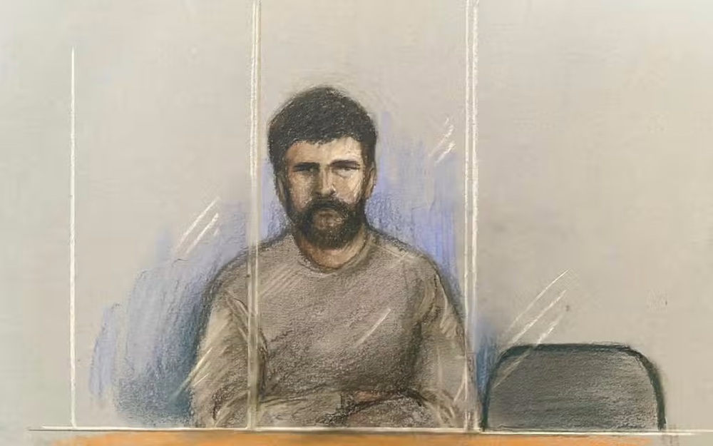 AN ARTIST’S IMPRESSION OF JOSHUA BOWLES WHO STABBED A US SPY AT A LEISURE CENTRE IN CHELTENHAM (ELIZABETH COOK/PA) (PA ARCHIVE)