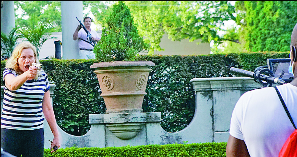 McCloskey, 63, carried an assault rifle, and his wife, 61, was waving a handgun.
