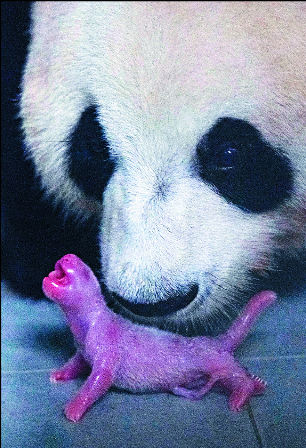 Ai Bao and her newborn cub are seen in the zoo in Yongin. The baby will make her public debut in about five or six months, once she can walk and eat bamboo. REUTERS