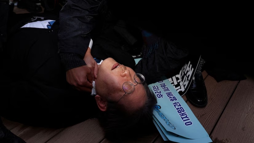 Lee Jae-myung, head of the liberal Democratic Party, South Korea’s biggest political party, was stabbed by a knife-wielding man who approached him asking for his autograph at an event in the southeastern city of Busan on Tuesday. The man was immediately detained by police.