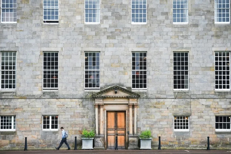 Behind its gates are peaceful grounds stretching over 220 acres (90 hectares), with majestic trees and lush grass well watered by the Scottish rain.
