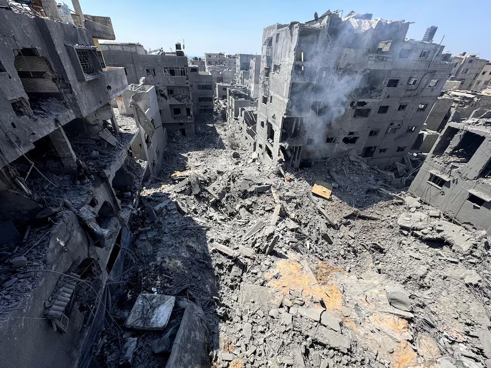 A general view shows the site of Israeli strikes on houses, amid Israel-Hamas conflict, at Al Shati refugee camp in Gaza City, June 22, 2024. (Reuters)