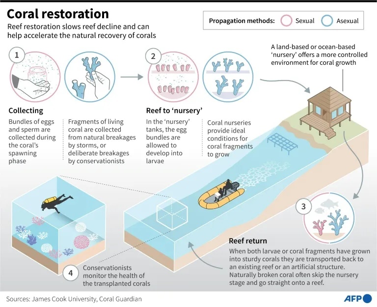Here is an overview of how coral restoration is being done around the world: