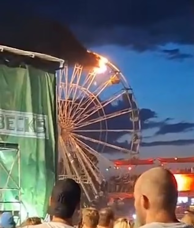 Photos published by German media showed flames engulfing gondolas on the spinning Ferris wheel, with thick black smoke billowing above the ride.