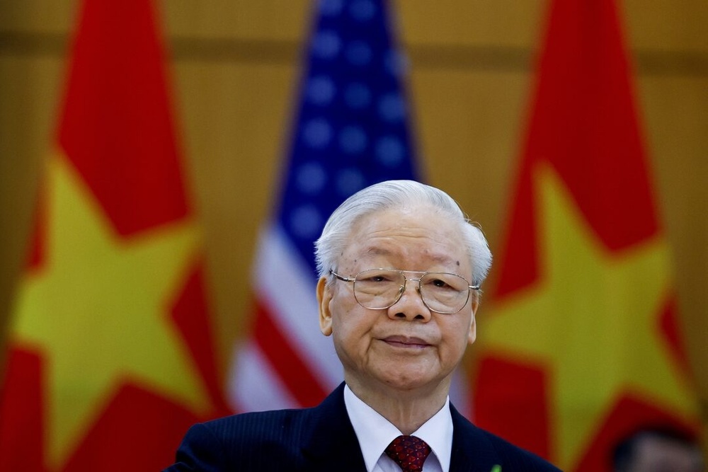 Vietnam's Communist Party General Secretary Nguyen Phu Trong attends a joint statement with U.S. President Joe Biden at the Communist Party of Vietnam Headquarters in Hanoi, Vietnam, September 10, 2023. REUTERS/Evelyn Hockstein/File Photo