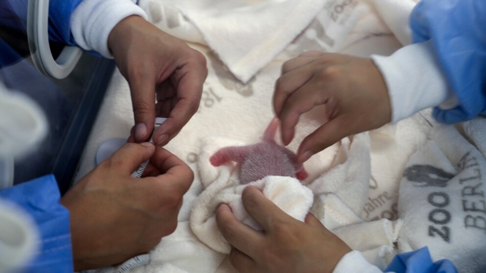 Without human help, one of the cubs likely would not have survived because giant pandas usually only raise one cub when they give birth to twins. So the zoo has stepped in with a team that includes experts from China's Chengdu Research Base of Giant Panda Breeding, who are on a visit to Berlin.