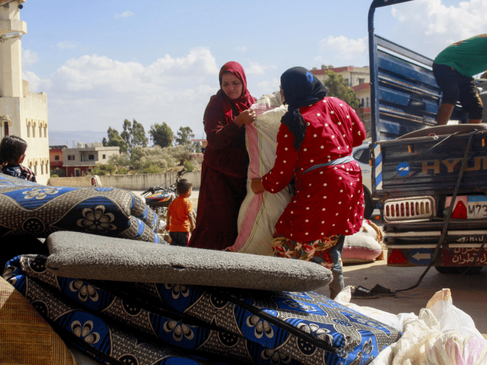 Syrians load their belongings on a truck as they prepare to leave Wazzani after the warning in the leaflets © Rabih DAHER / AFP