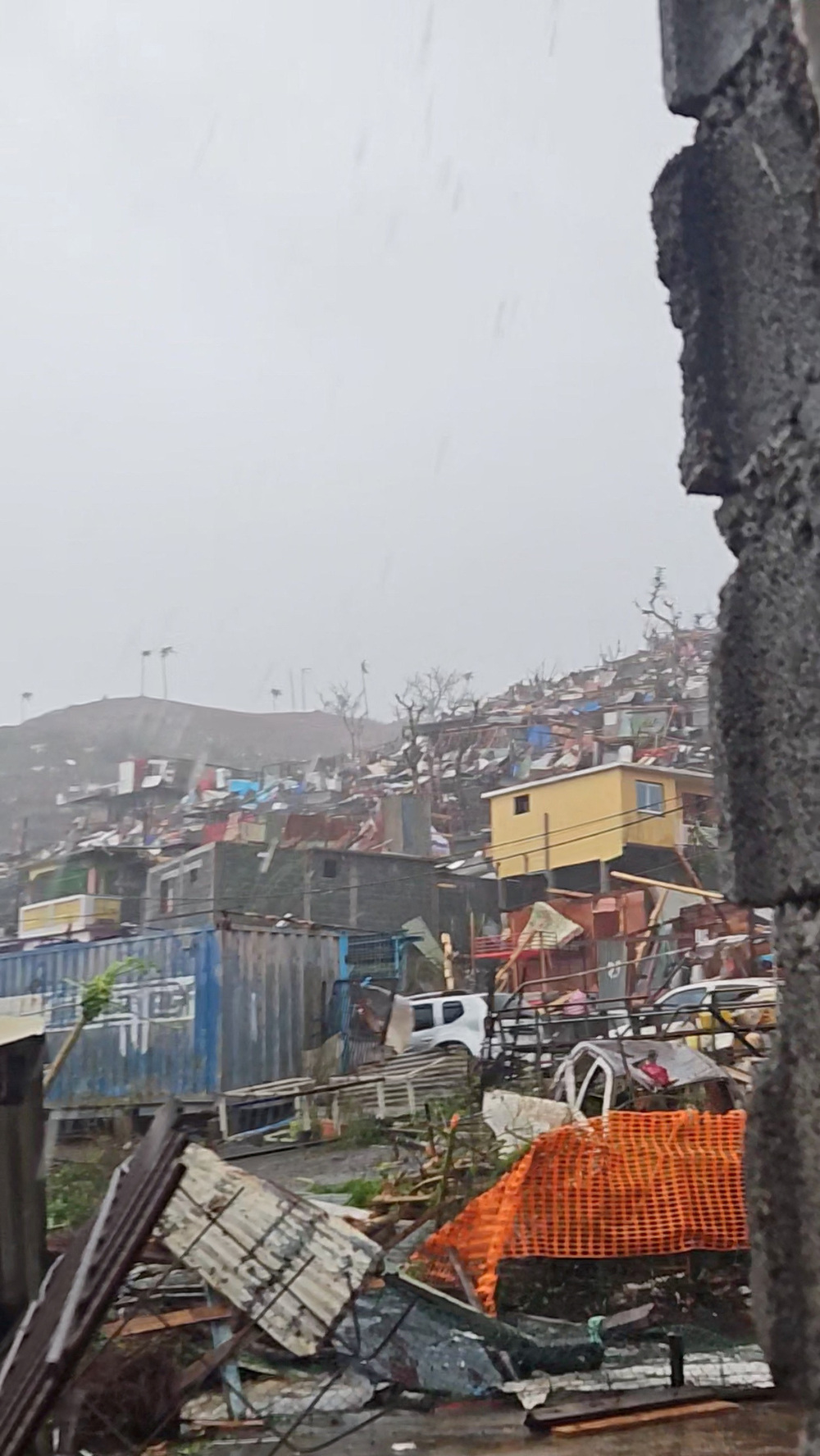 A view shows damage caused by Cyclone Chido in Kaweni, Mayotte, France, in this screengrab from a social media video obtained by Reuters on December 14, 2024. (Reuters)