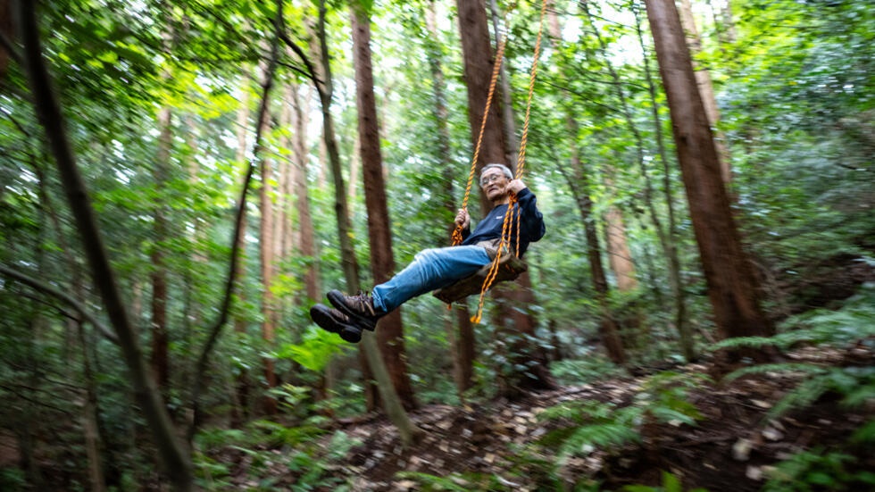'Poop master' Masana Izawa, seen playing on a swing, says giving facese back to nature is a 'sublime act' © Philip FONG / AFP
