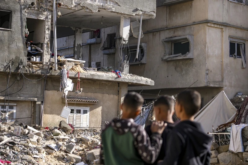 Palestinians look at a damaged residential building following an overnight Israeli strike in Deir al-Balah, Gaza Strip, Wednesday, Jan. 8, 2025. (AP Photo/Abdel Kareem Hana, File)