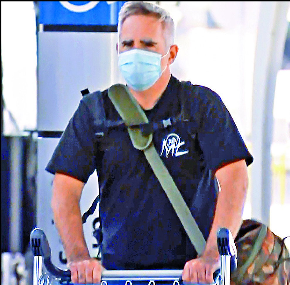 Michael Smith, left, and Bill Birtles arrive in Sydney under diplomatic protection. AP